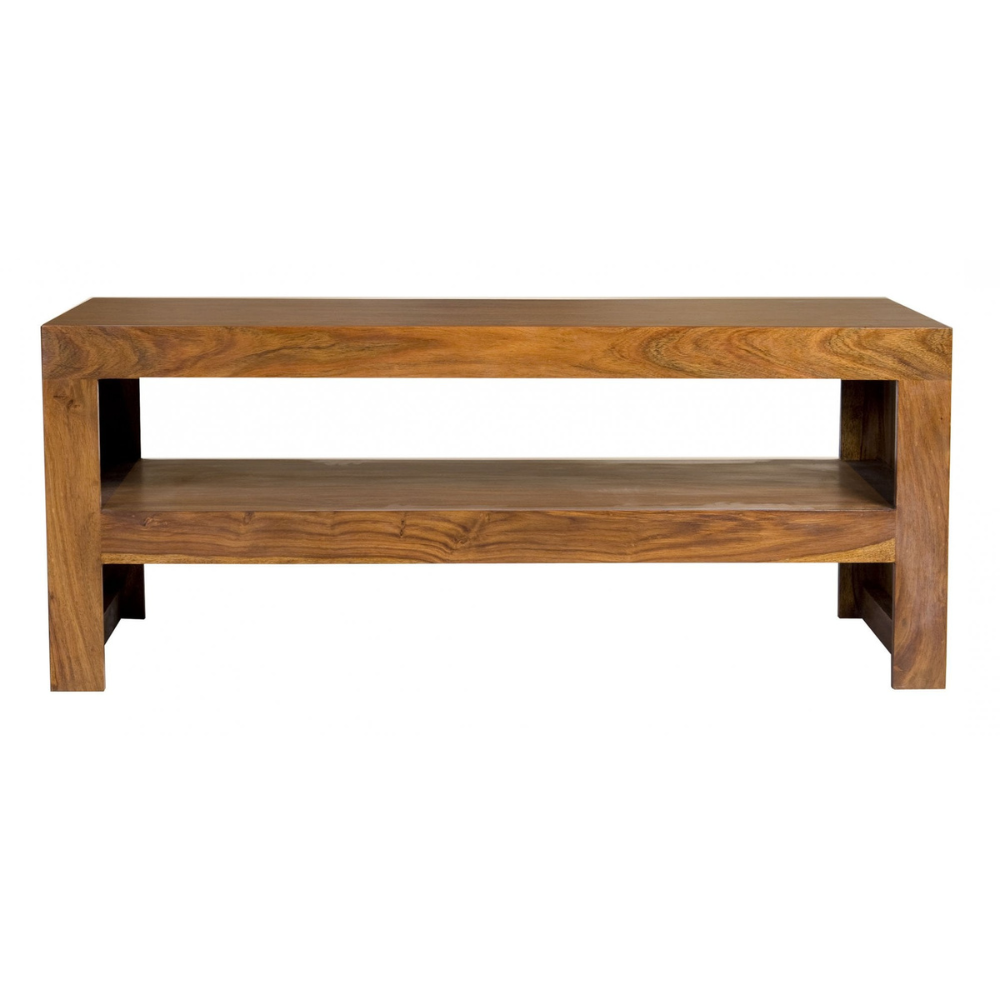 The HCF Gaya cube Sheesham wood coffee table is simple, with clean straight edges, solid sides and a shelf underneath.