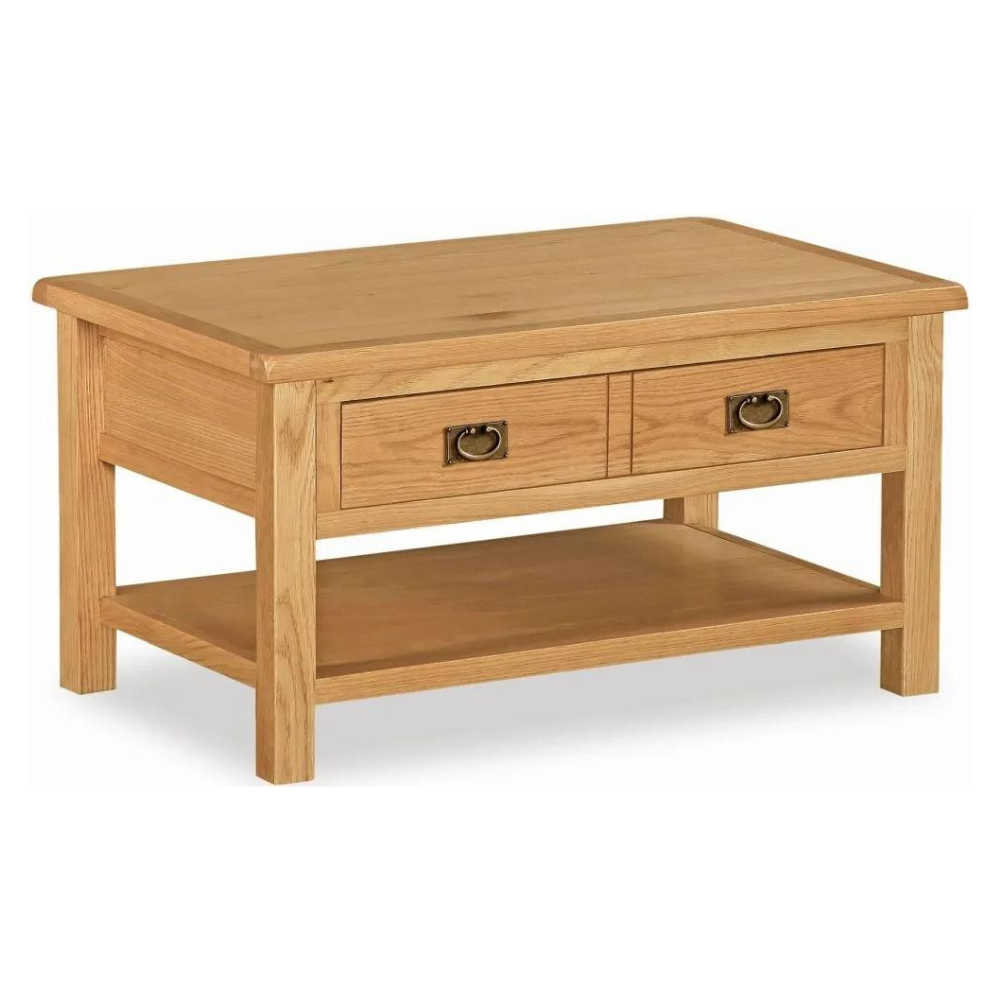 The HCF Salisbury Coffee Table with Drawer is well well-constructed unit that will be an excellent feature in your living room. This Coffee Table benefits from a strong oak wood frame with a natural tone and the table has a smooth surface. The HCF Salisbury Coffee Table benefits from two upper drawers for keeping your living room belongings and accessories inside.