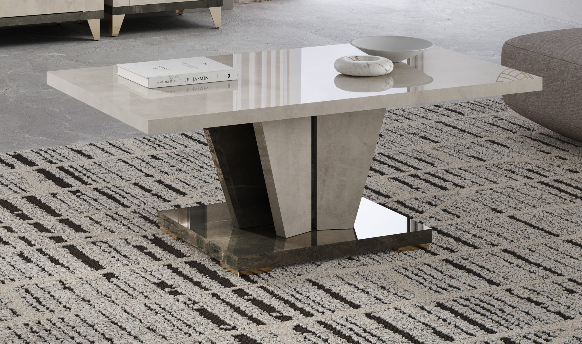 With its warm and sparkling glow, this collection lights up elegance and wins the heart in moments. This coffee table allows a living room with a contemporary design capable of transmitting energy and passion.